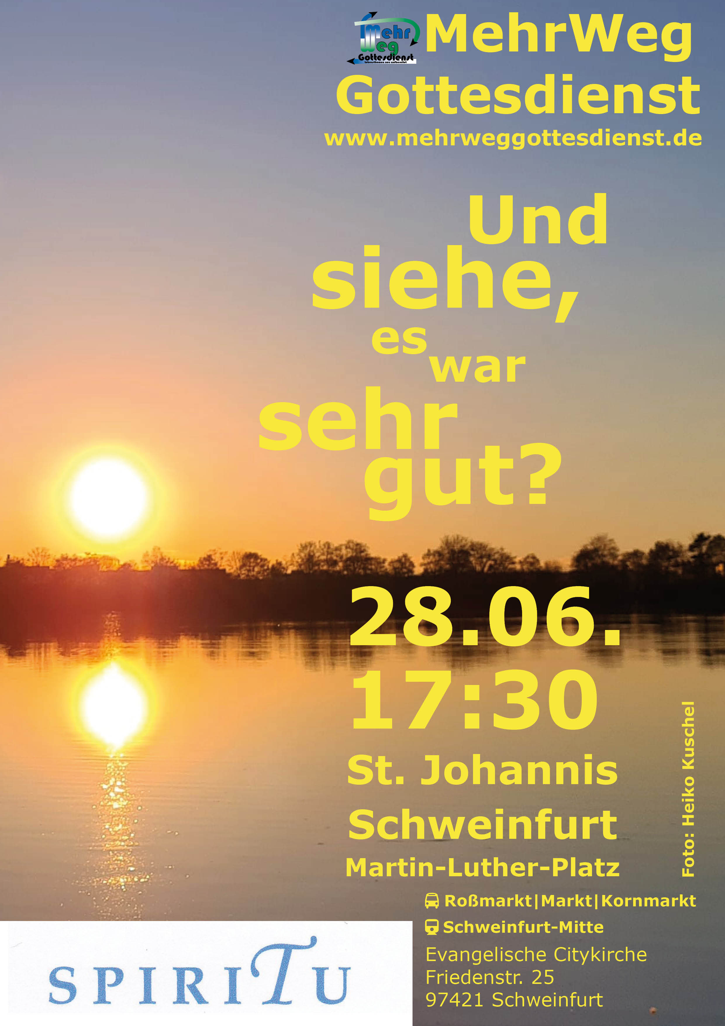 Plakat vom 28.06.2026 HinweisMit einem Klick auf die Bilddateien gelangen sie jeweils zur Originaldatei in voller Auflösung. FotoFoto: Heiko Kuschel 28.06.2026 - Und siehe, es war sehr gut? alternative Bildformate Plakatbild Querformat Plakatbild Bannerformat Plakatbild Banner schmal Insta-Story MehrNews Termine 2026 Newsletter ical Feeds MehrInfo Was ist das? Wer macht das? Wer hatte die Idee? Logo Rückblick Abläufe und mehr Beiträge der Teilnehmer Fotos